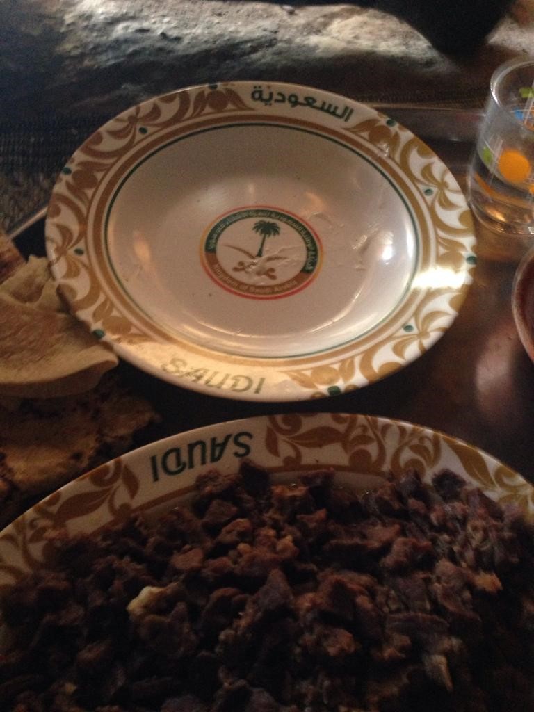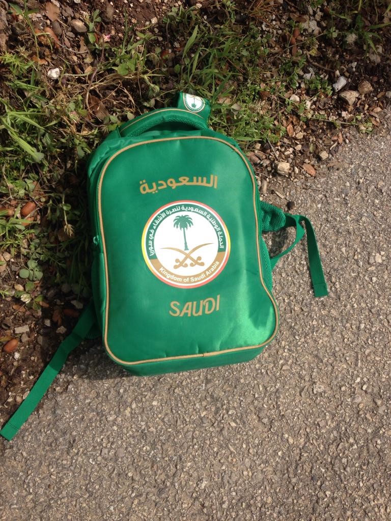 “We’re using the plates with the Saudi logo to show you we are given this stuff… but we normally don’t like using them as we don’t think Saudi politics helped Syrians in any way…”.